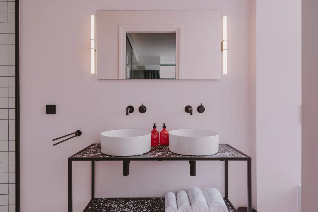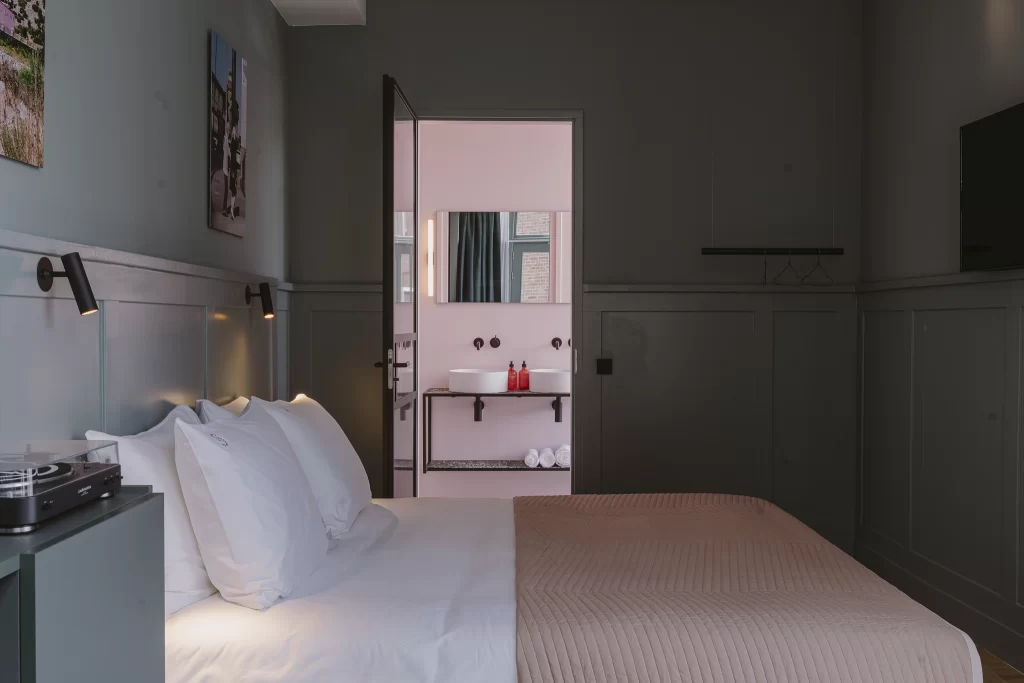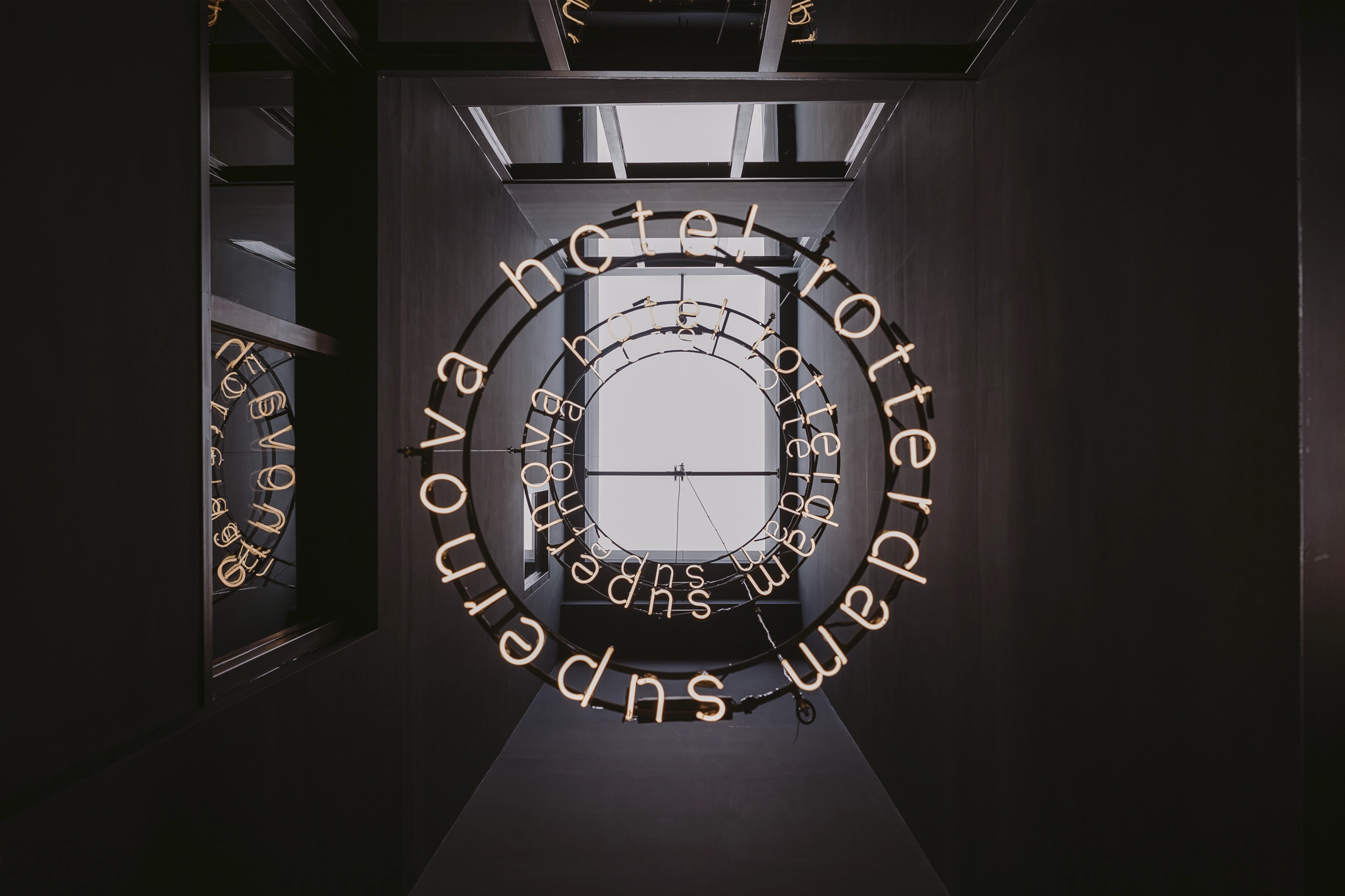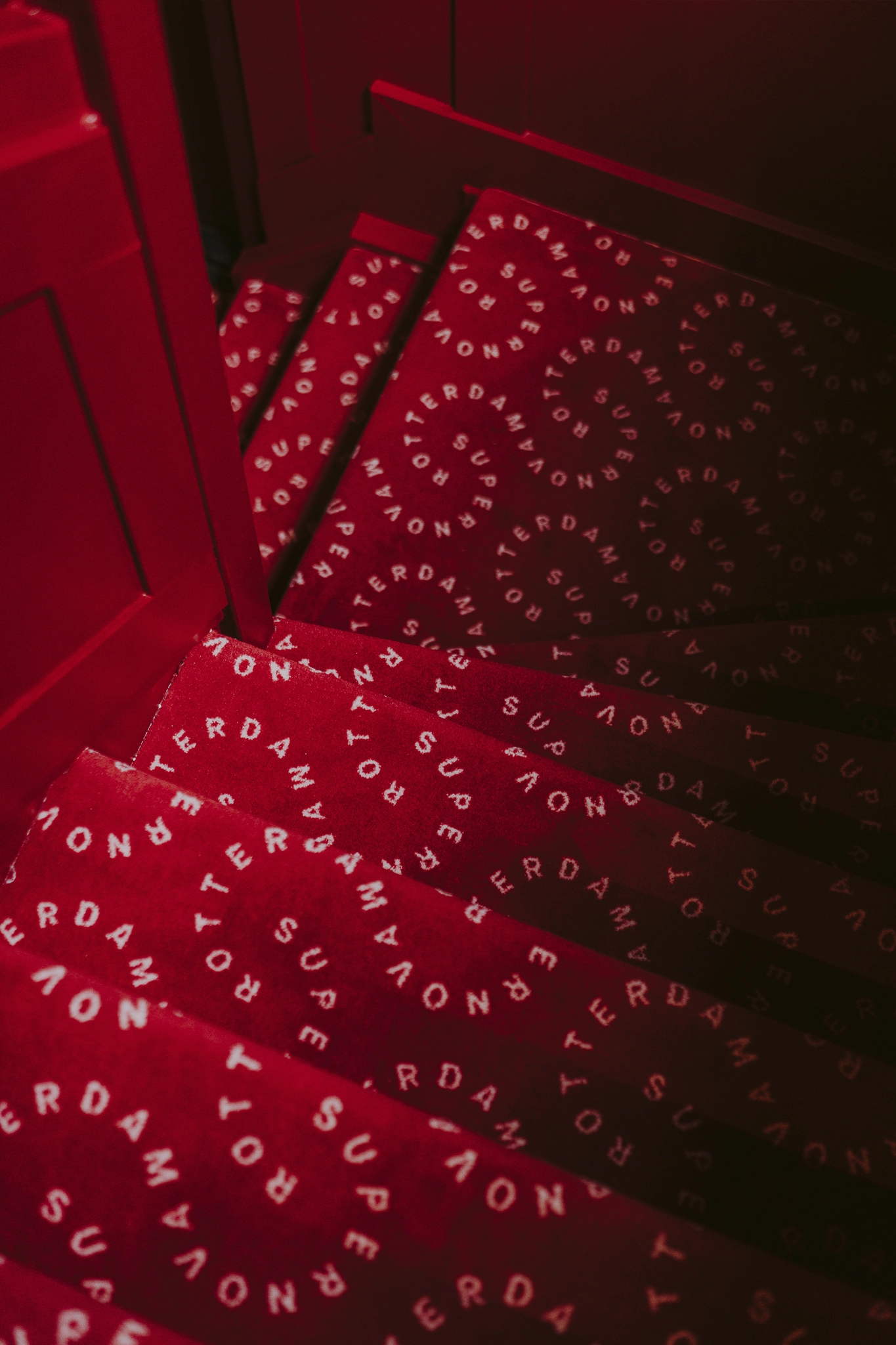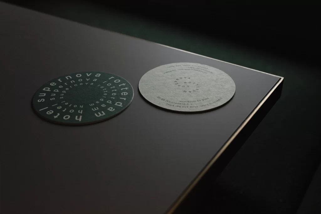 The identity turns spaces into immersive, welcoming experiences. Inspired by a supernova's burst and Rotterdam's gritty, diverse spirit, the branding infuses dynamic graphic elements throughout: neon hallway accents, playful carpet patterns, and stationery with cosmic bursts. I also handled material selection and digital assets to ensure seamless integration, creating a multifaceted atmosphere that balances raw urban edge with boutique sophistication—ideal for a vibrant Rotterdam boutique hotel and creative urban hotel identity.