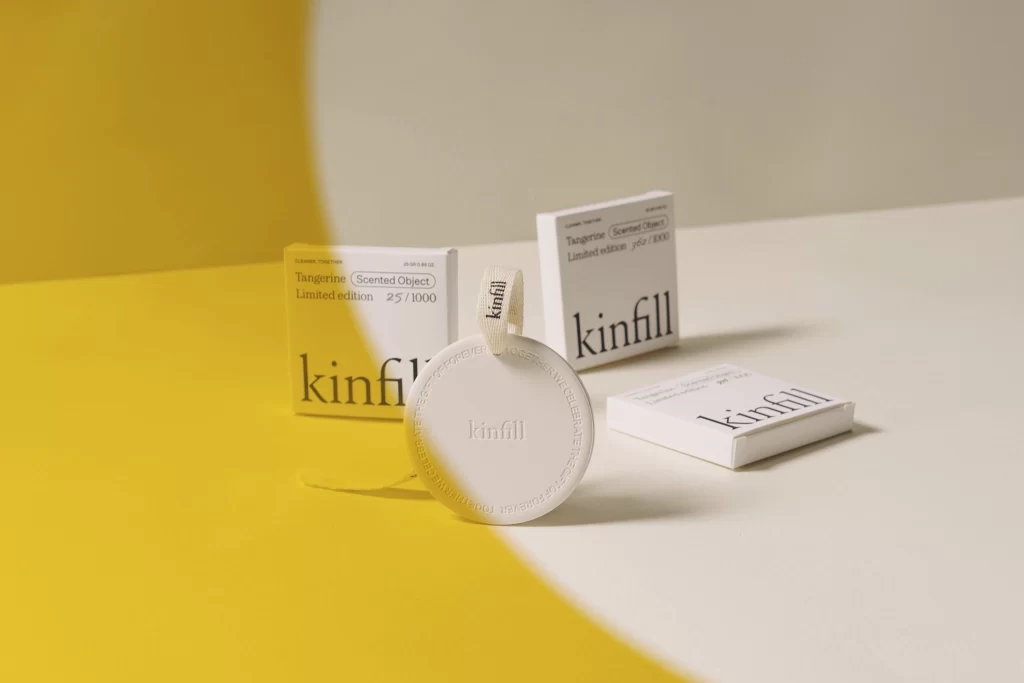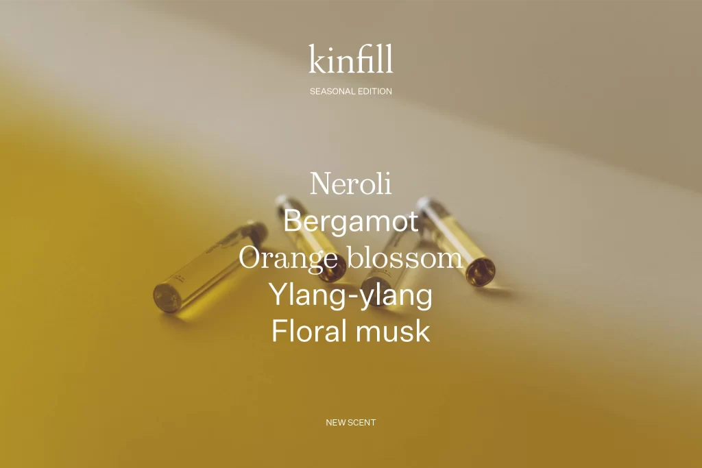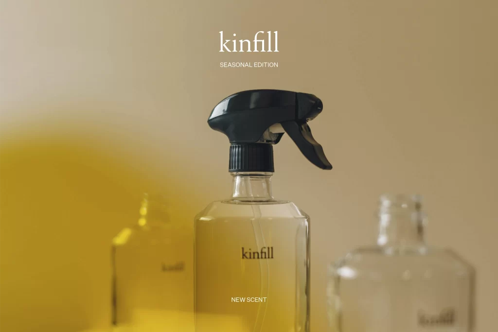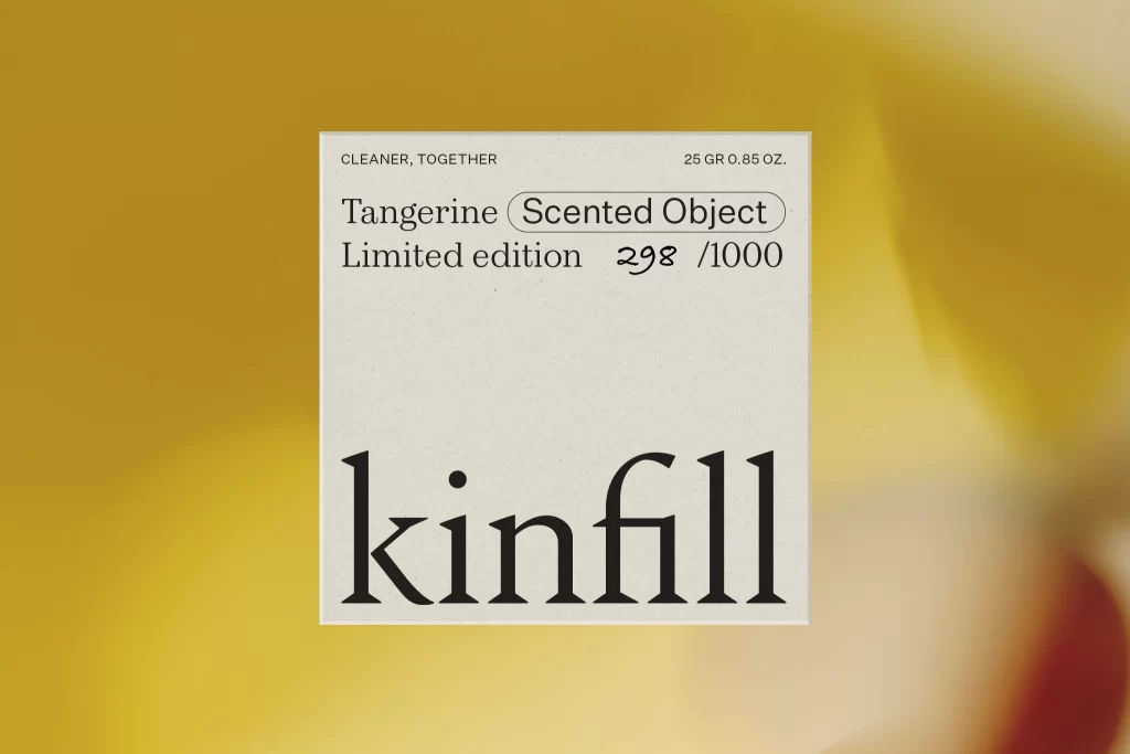 As art director and packaging designer for Kinfill—an eco-friendly home care brand focused on refillable cleaning products—I led the seasonal collection's creative development. This annual line adds a limited-edition scent to Kinfill's four signatures, inspired by the season for sustainable routines. In Spring 2022, I created and named Tangerine, blending bitterness and sweetness with classical-modern notes for luxurious refillable cleaners. Tangerine features a floral heart and spicy base, ideal for natural, non-toxic cleaning.