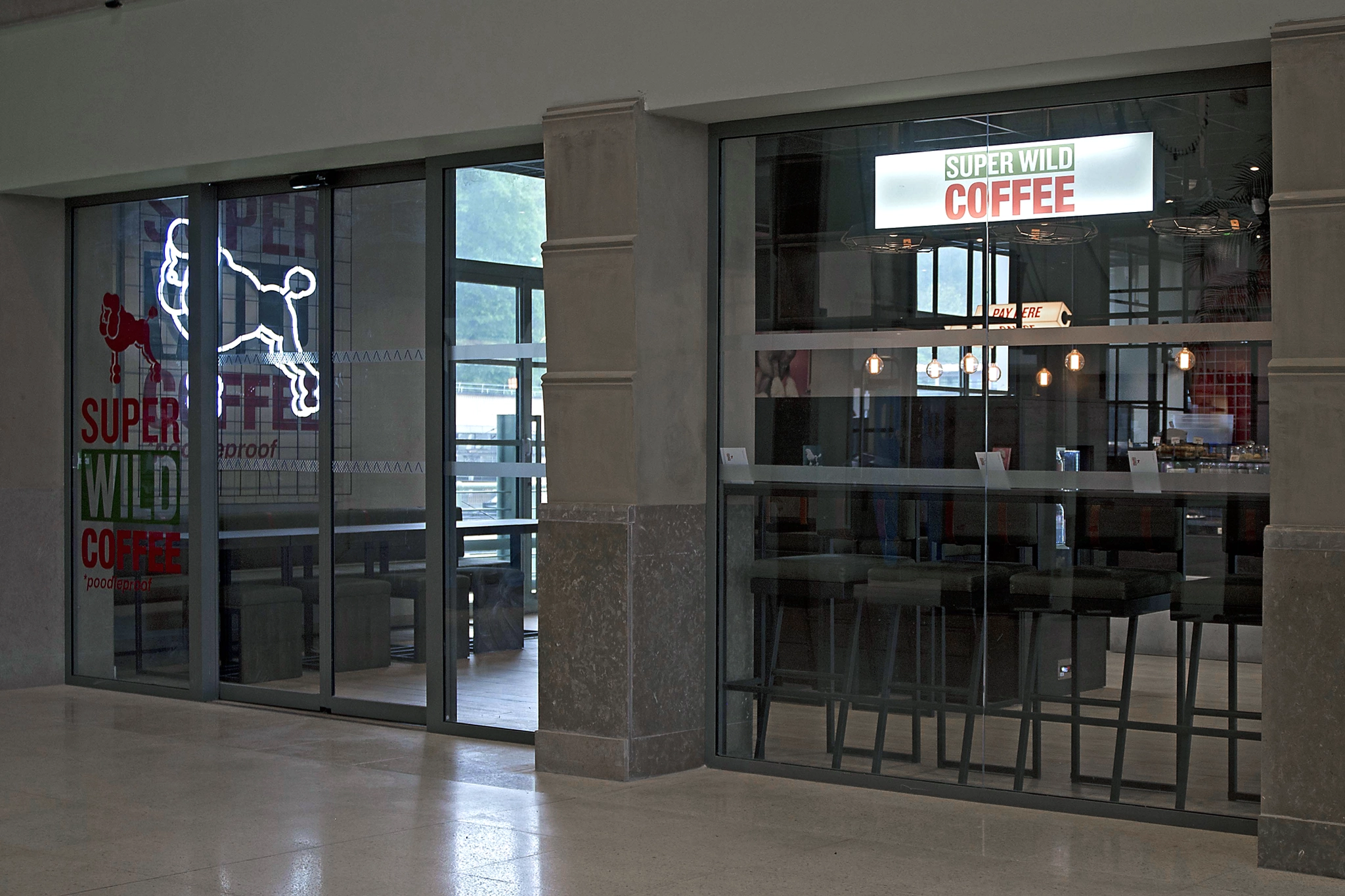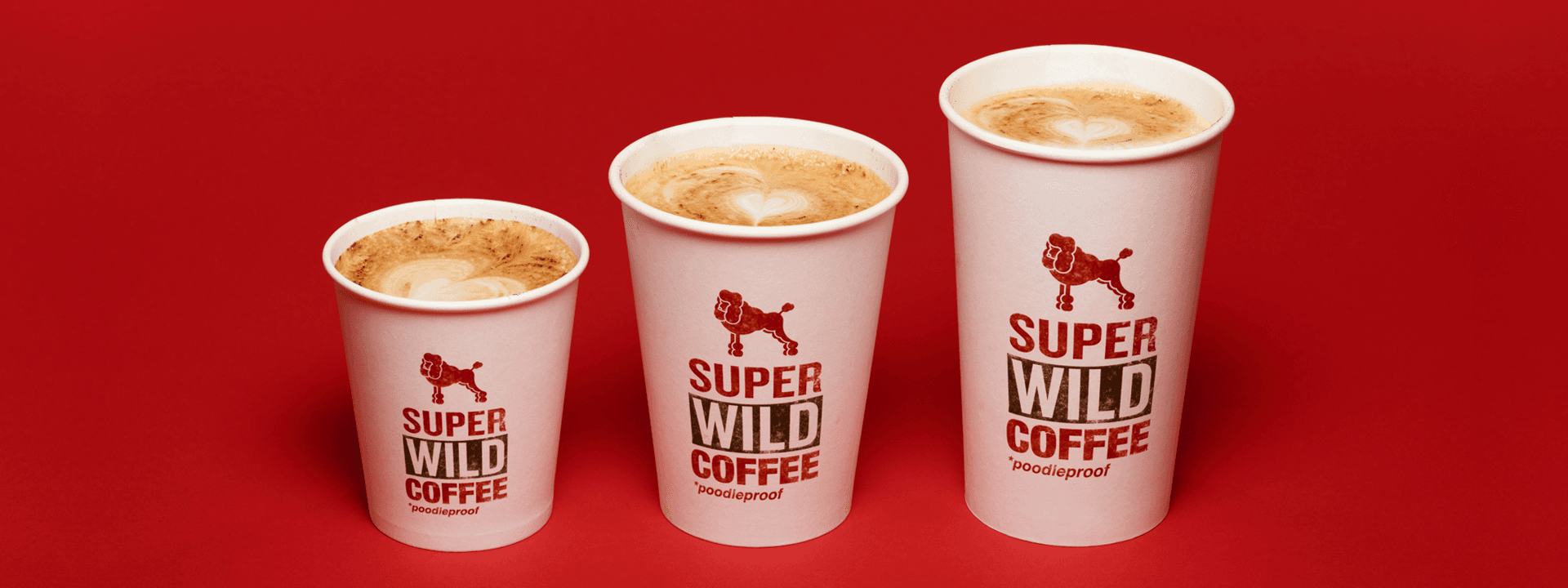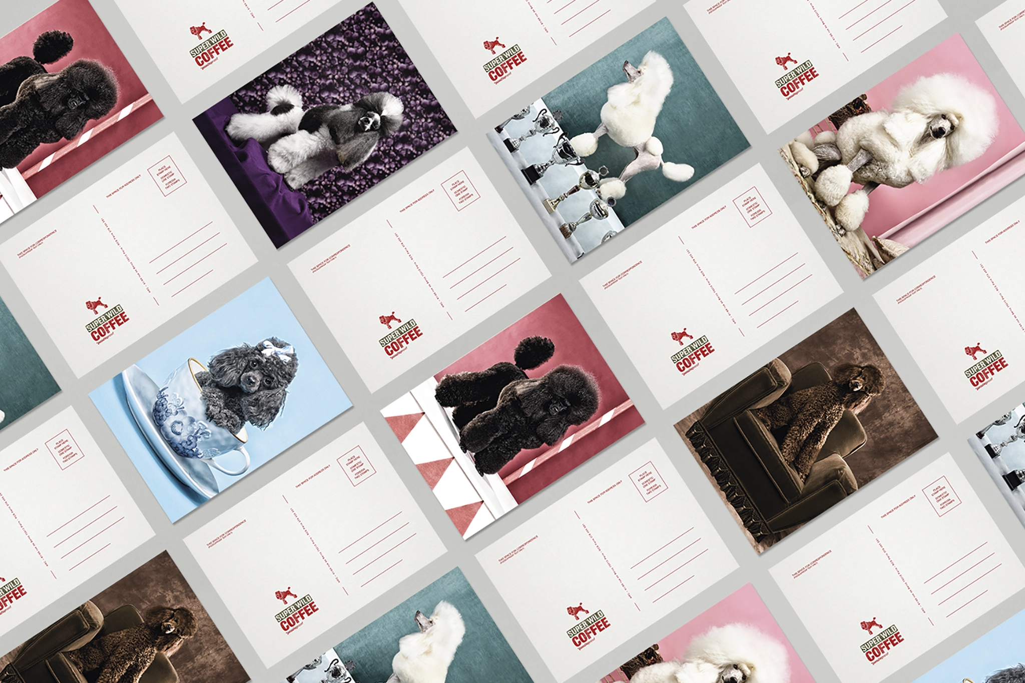 As freelance art director, concept creator, and identity designer for Puresang, I crafted Super Wild Coffee's brand identity from scratch—a fun cafe chain focusing on lighthearted, self-deprecating hospitality. The "poodleproof" concept adds whimsy to design, logo, visuals, and signage, with a quirky poodle mascot blending French origins (historic hunting dogs) and chic image with "wild" energy. This contrast appeals to fans of playful cafe branding.